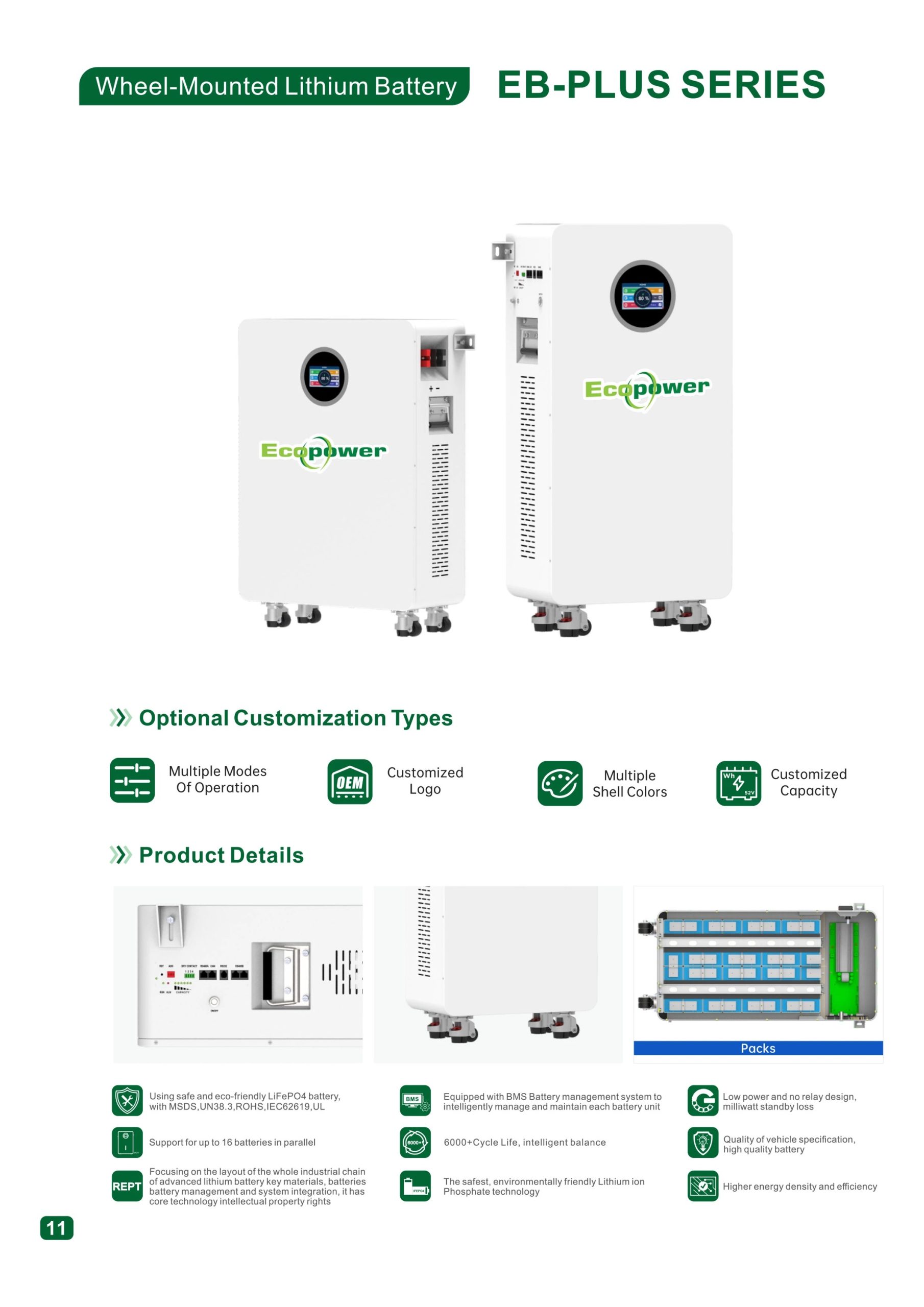 - Smart BMS – Giao tiếp thông minh: Hệ thống BMS tiên tiến có khả năng giao tiếp với nhiều loại inverter phổ biến, giúp tối ưu hóa hiệu suất sạc/xả và bảo vệ toàn diện hệ thống.